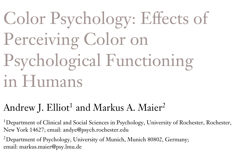 A study by Elliot & Maier (2014) titled Color Psychology: Effects of Perceiving Color on Psychological Functioning in Humans found that color can affect cognitive performance, mood, and even purchasing decisions.